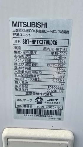 海南市日方 三菱電機自然冷媒CO2家庭用ヒートポンプ給湯機 貯湯ユニットSRT-HPTK37WUDX6→コロナ自然冷媒CO2家庭用ヒートポンプ給湯機 ヒートポンプユニットCHP-DZ601K、貯湯ユニットCTU-46AZ1K エコキュート交換工事