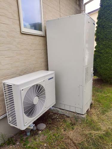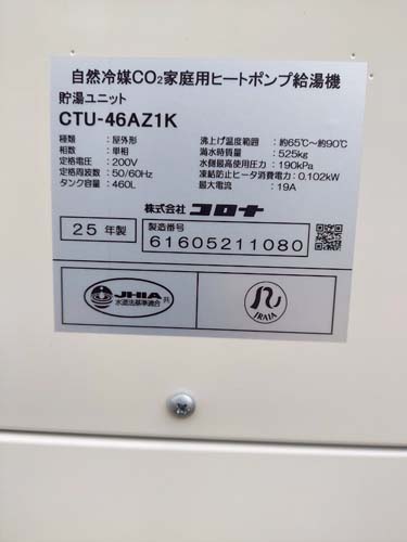 海南市日方 コロナ自然冷媒CO2家庭用ヒートポンプ給湯機 ヒートポンプユニットCHP-DZ601K、貯湯ユニットCTU-46AZ1K エコキュート交換工事