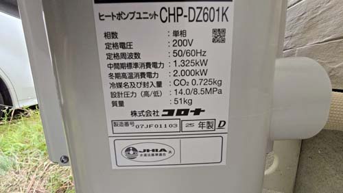 海南市日方 コロナ自然冷媒CO2家庭用ヒートポンプ給湯機 ヒートポンプユニットCHP-DZ601K、貯湯ユニットCTU-46AZ1K エコキュート交換工事|和歌山エコキュート取り付け工事センター