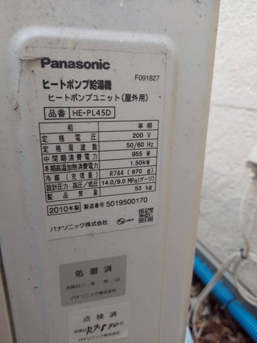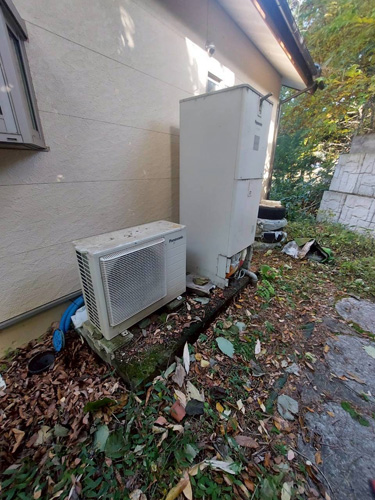 有田市箕島 パナソニックヒートポンプ給湯機ヒートポンプユニット(屋外用)HE-PL45D→コロナ自然冷媒CO2家庭用ヒートポンプ給湯機ヒートポンプユニットCHP-DZ451K、貯湯ユニットCTU-37AZ1K エコキュート交換工事